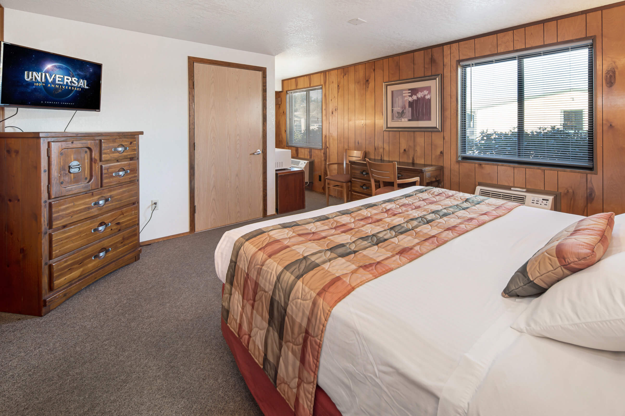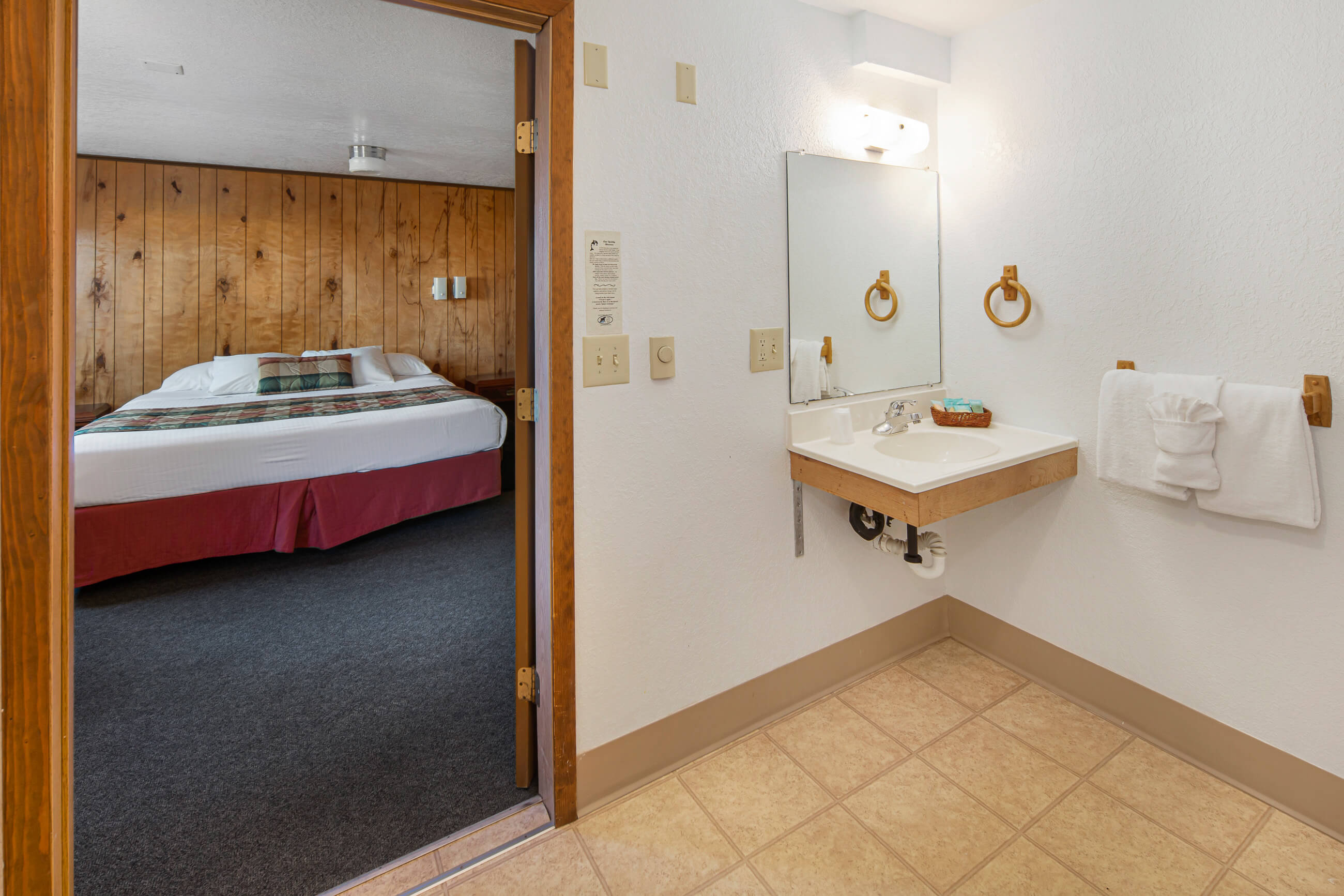 These King rooms are considered accessible; however, there is not a roll in shower. If a roll in shower is required, please contact directly at 360.378.4220 to reserve a room with a roll in shower. There is only one available so book early!