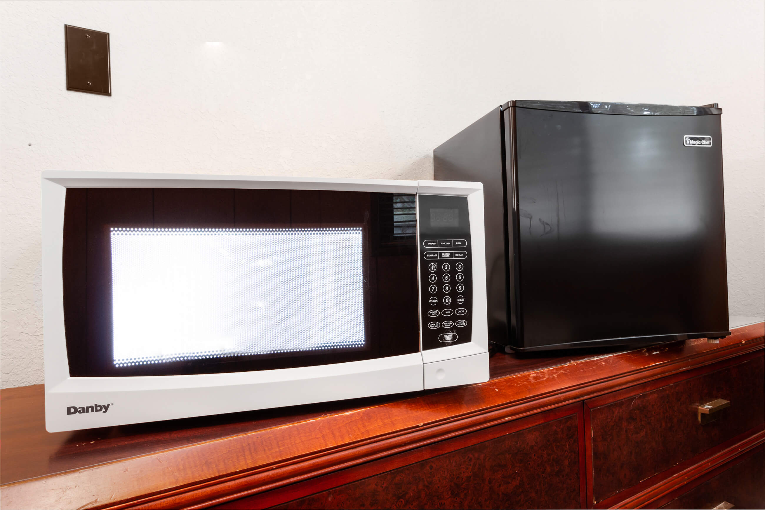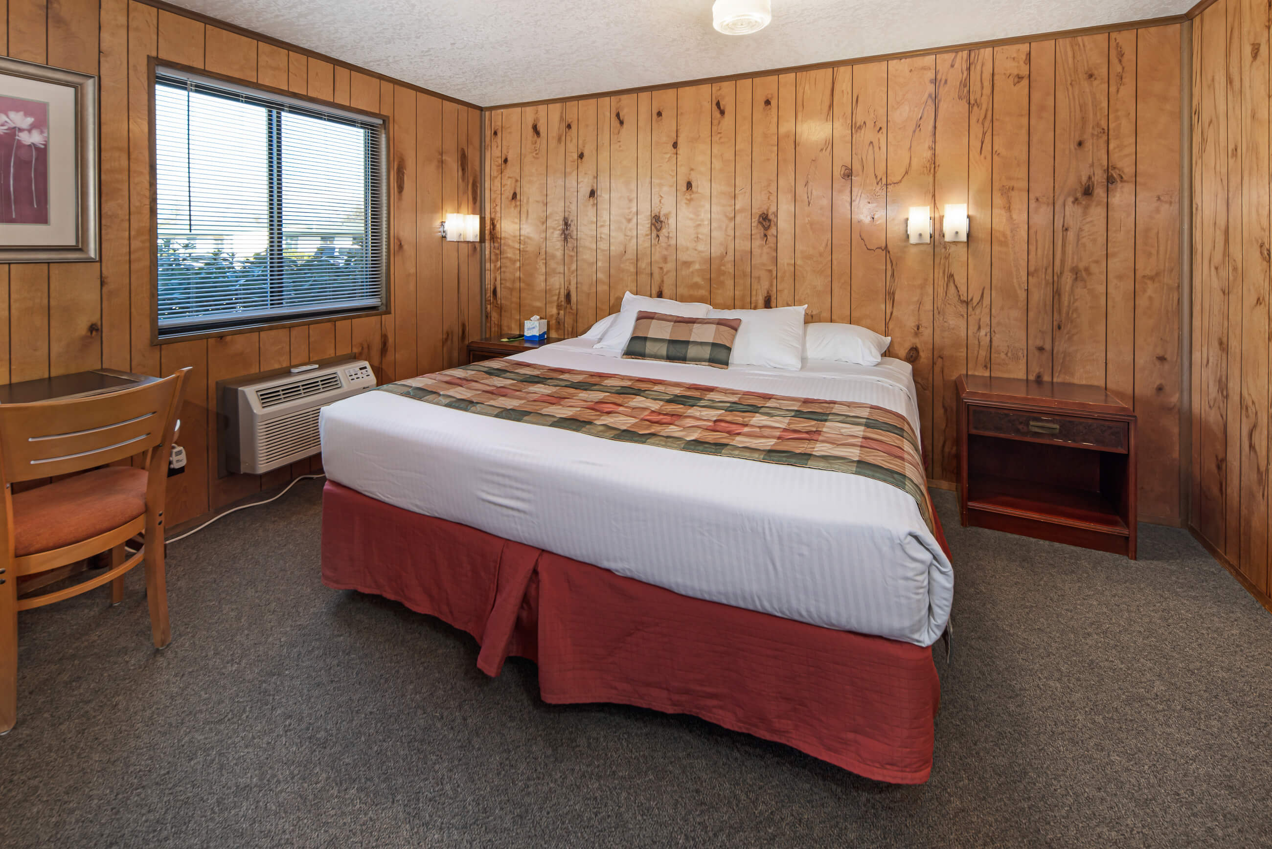 If you need a little more space, our King Rooms are twice the size (22′ x 14′) of our Micro rooms, with much larger bathrooms that include a tub/shower combination. Each King Room has a king-size bed with 5 pillows, a mini-fridge and microwave, and a larger 32″ TV. They are also the only rooms at The Orca Inn which can accommodate and include a rollaway bed.