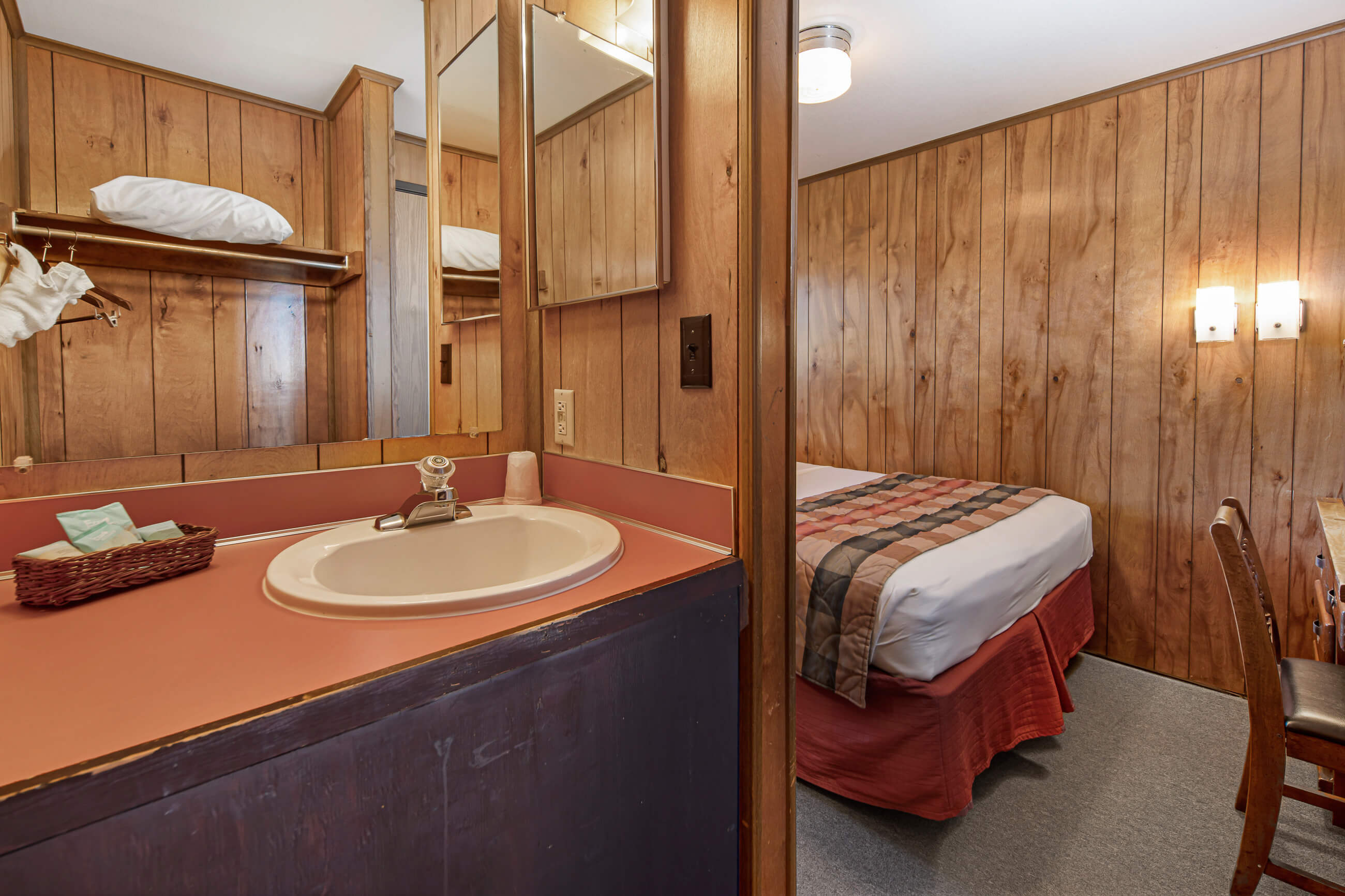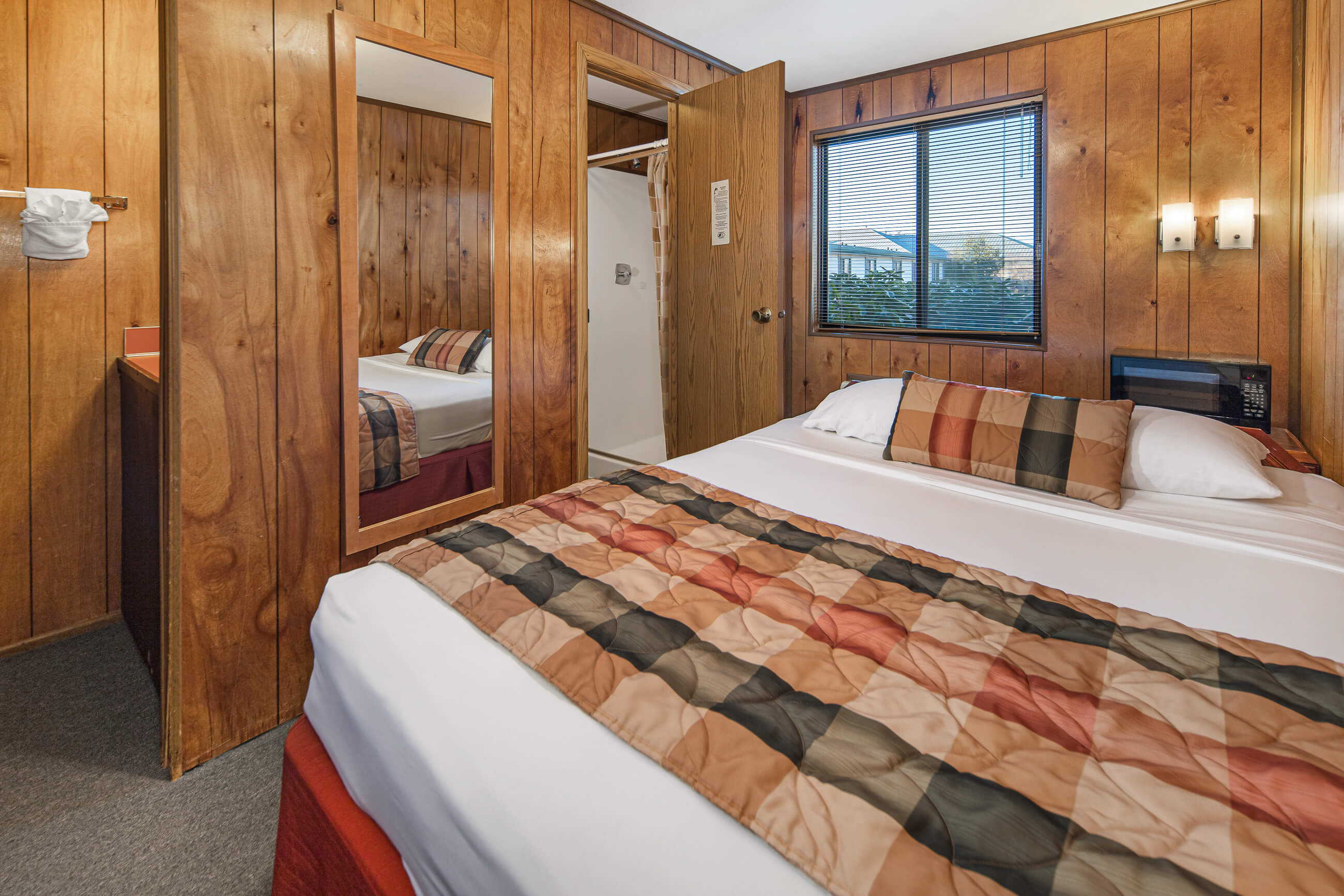 Offering Cozy with a capital C, our Micro Queen rooms offer the throwback charm of wood paneling with the modern convenience of a mini-fridge, microwave, and cable TV.